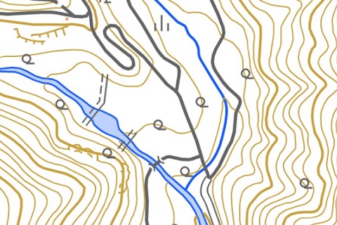 ・・・んだけど、昔の空中写真見ても、道があるっぽく見えないんだよなあ。それより上流に橋っぽいものがあるように見える。当然、今この道はない。